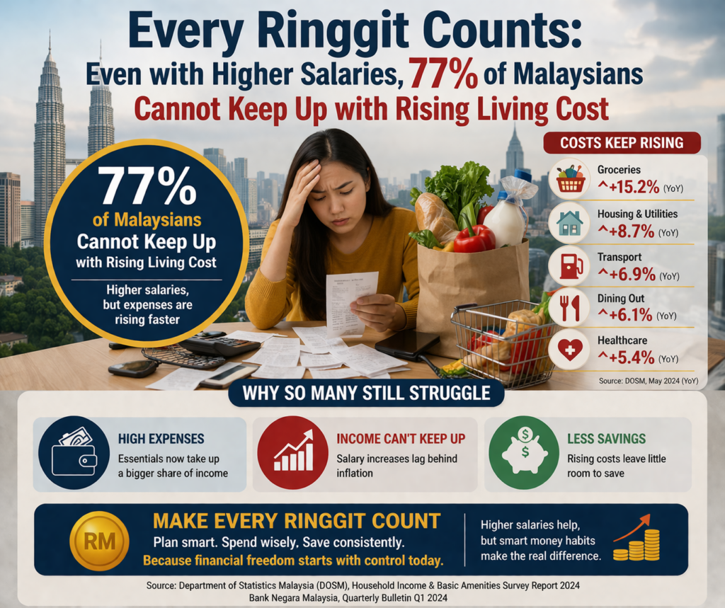 Every Ringgit Counts: Even with Higher Salaries, 77% of Malaysians Cannot Keep Up with Rising Living Cost